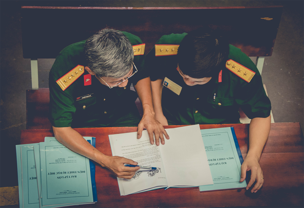 100% cán bộ, giảng viên có trình độ đại học trở lên, trong đó có 65,5% có trình độ sau đại học (30 đồng chí có học vị Tiến sĩ và chức danh Phó Giáo sư). Hiện nay, số nghiên cứu sinh tại các học viện, nhà trường trong và ngoài nước là 31 đồng chí.