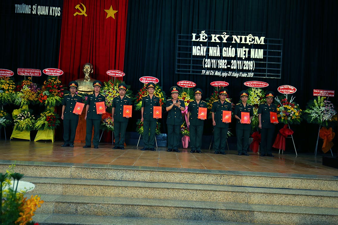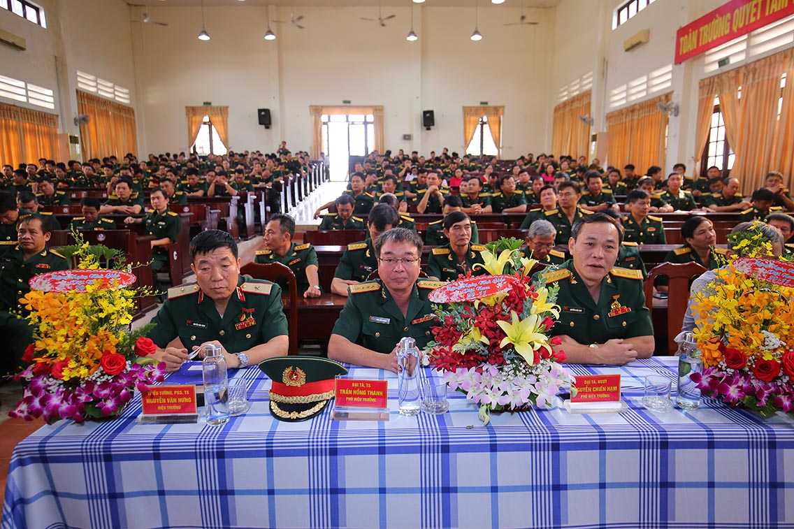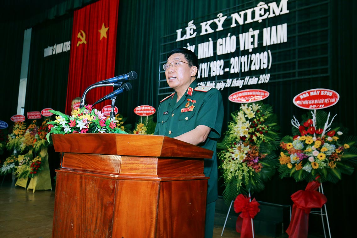 Tại buổi lễ, Đại tá Hoàng Đăng Văn – Chủ nhiệm Chính trị Nhà trường đọc thư của Bộ trưởng Bộ Quốc phòng chúc mừng các nhà giáo, cán bộ quản lý giáo dục trong Quân đội nhân ngày Nhà giáo Việt Nam.