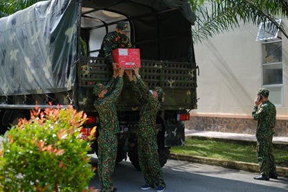 Đại tá Trần Hồng Thanh – Hiệu trưởng Nhà trường giao nhiệm vụ, động viên và nhắc nhỡ các đồng chí trong tổ sửa chữa, cứu kéo phục vụ cho nhiệm vụ phòng chống dịch của Bộ Quốc Phòng