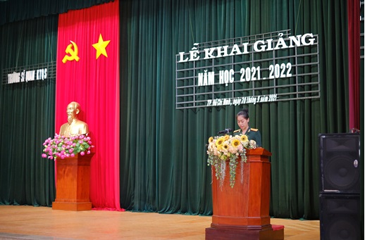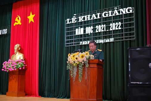 Đại tá Trần Hồng Thanh, Hiệu trưởng Nhà trường phát biểu diễn văn khai giảng năm học 2021-2022