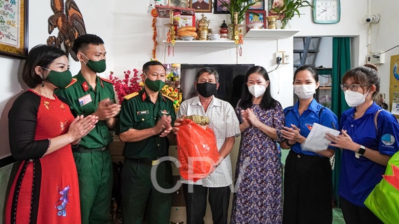 Đại diện Nhà trường trao bánh chưng và quà cho gia đình chính sách trên địa bàn Quận Gò vấp