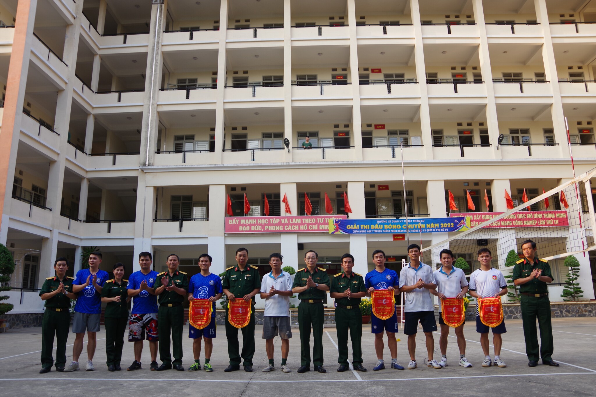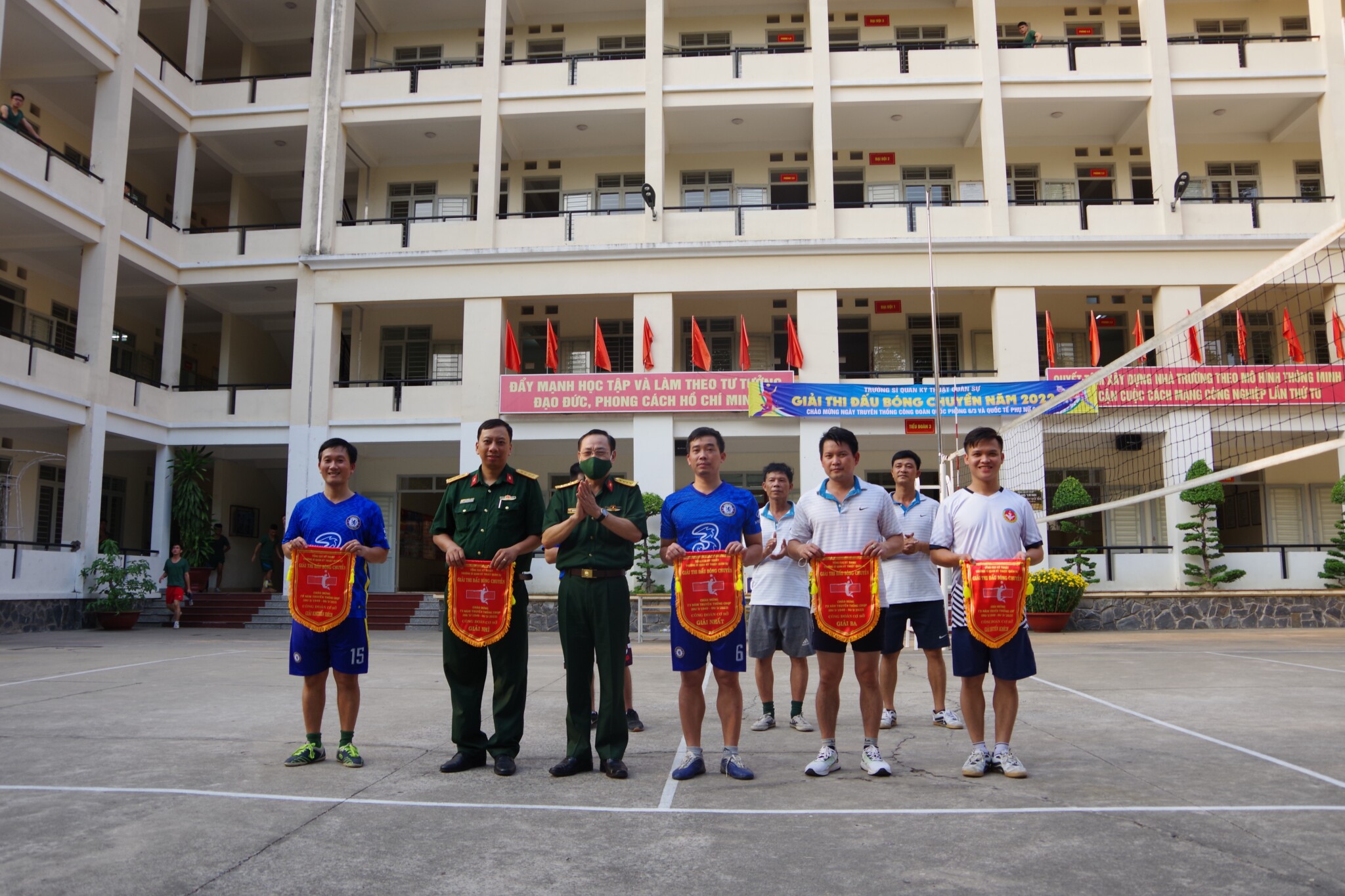 Kết thúc giải thi đấu, đồng chí Đại tá Nguyễn Chiến Hạm Chính ủy Nhà trường đã đến dự, động viên, cổ vũ và trao giải cho các đội bóng.