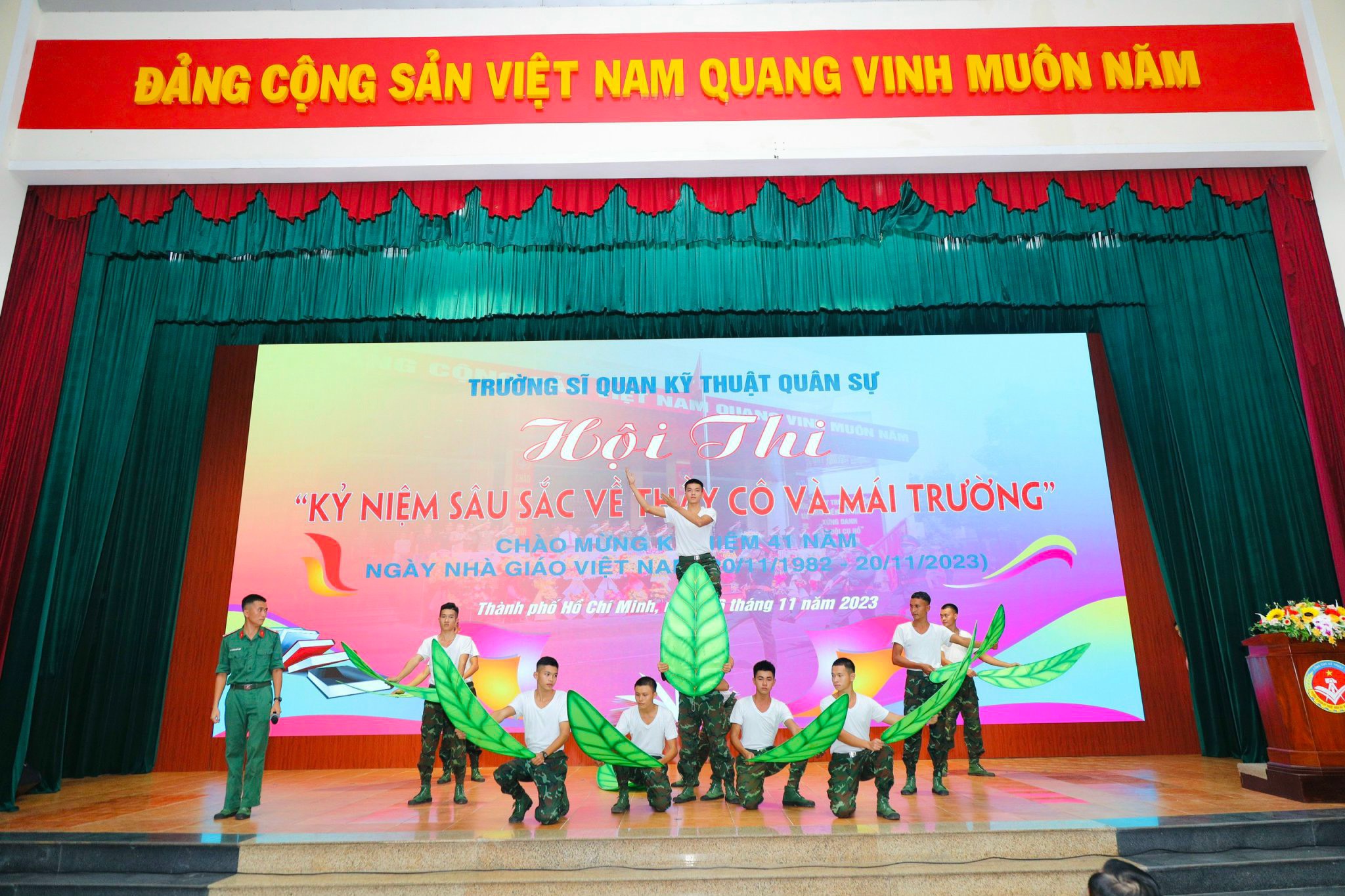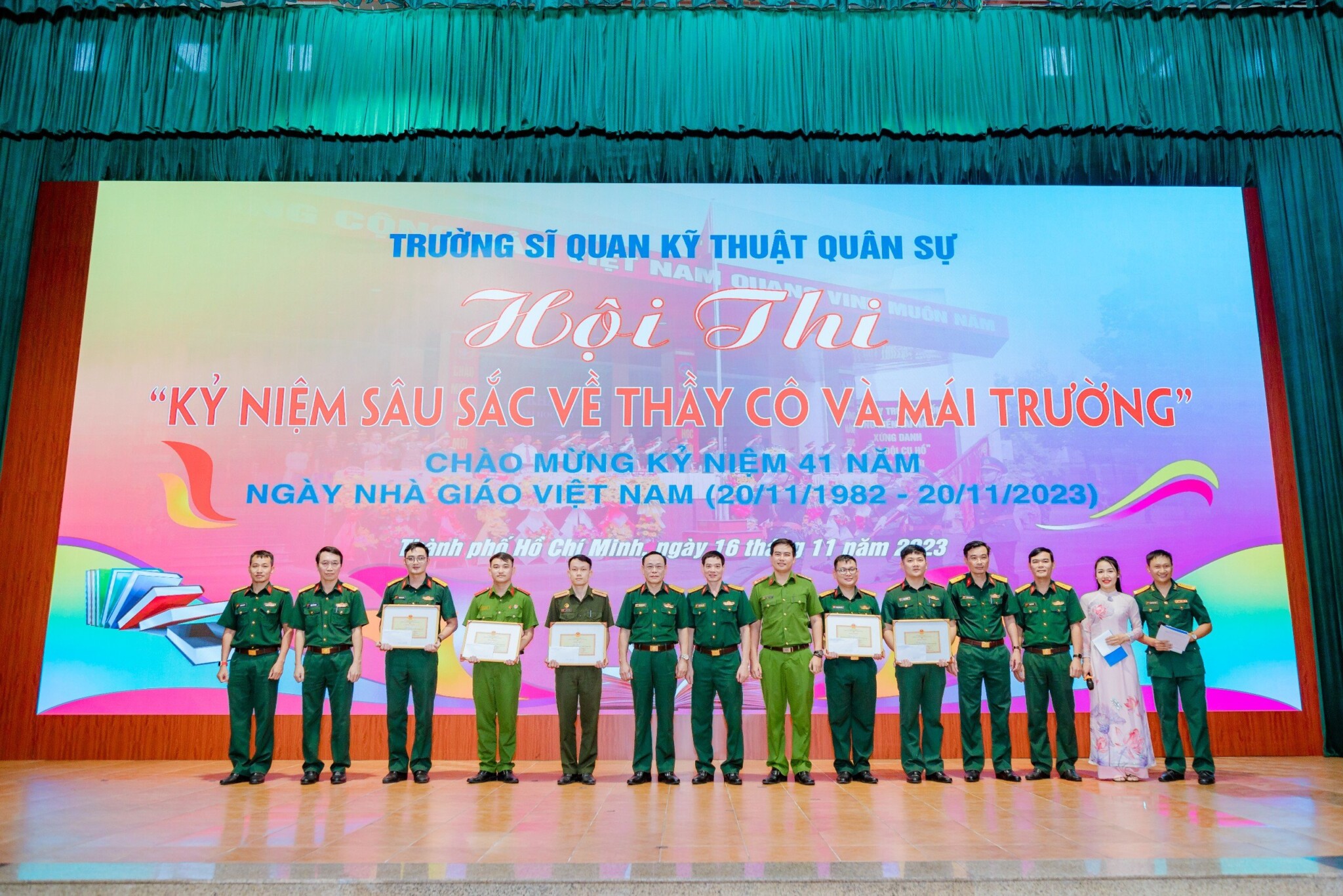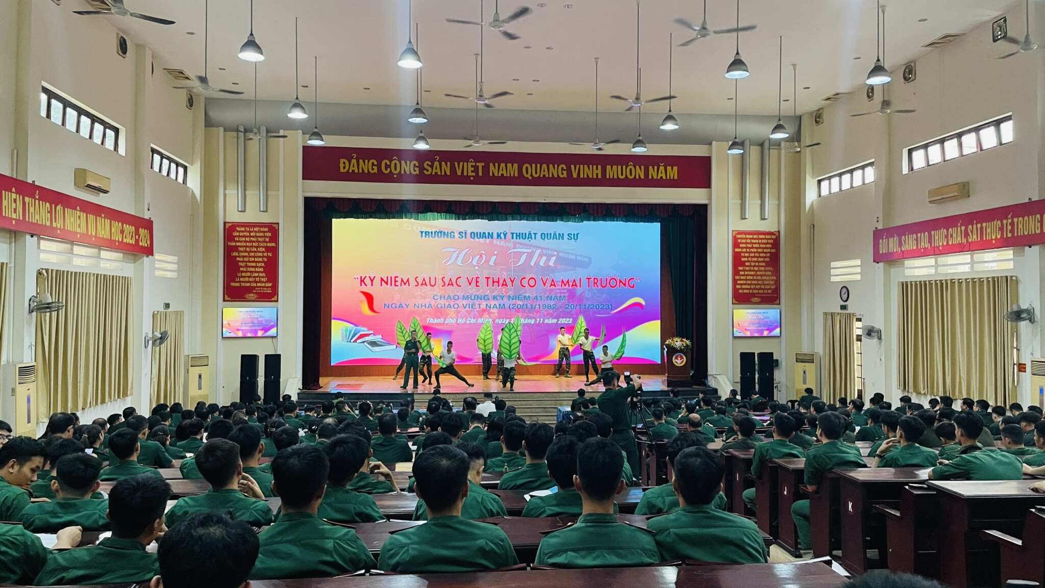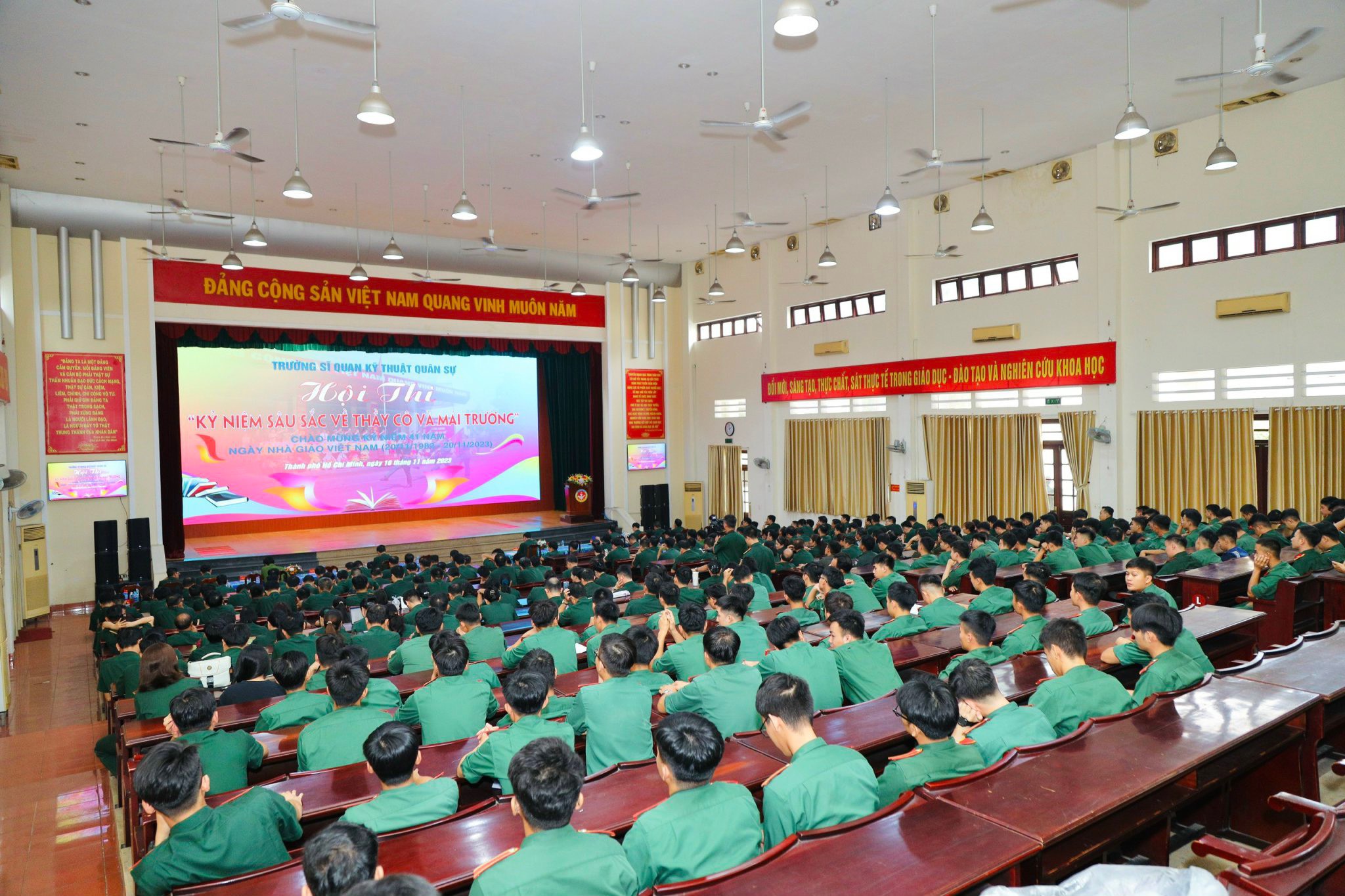 Chiều ngày 16/11/2023, tại Hội trường lớn, Trường Sĩ quan Kỹ thuật quân sự, đã diễn ra Hội thi với chủ đề “Kỷ niệm sâu sắc về thầy cô và mái trường”. Hội thi là một hoạt động trong khuôn khổ kỷ niệm 41 năm ngày Nhà giáo Việt Nam (20/11/1982 – 20/11/2023) và 75 năm ngày thành lập Trường Sĩ quan Kỹ thuật quân sự (15/12/1948 – 15/12/2023).